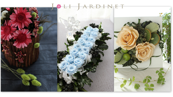 フラワーアレンジメントは初めてという方、ギフトやブライダルグッズを作ってみたいという方、本格的に技術を習得し教室開校を目指したいという方まで、おひとりおひとりの目的を大切に、丁寧に指導。生徒様ご自身のレベルや目的にあったクラスを選べ、また、ご自身のペースで月に1回程度からでも受講可能です。あらゆるフラワーアレンジメントを学べる完全予約制のプライベートサロンです。(「Joli Jardinet」はフランス語で「かわいい小庭」という意味です。)